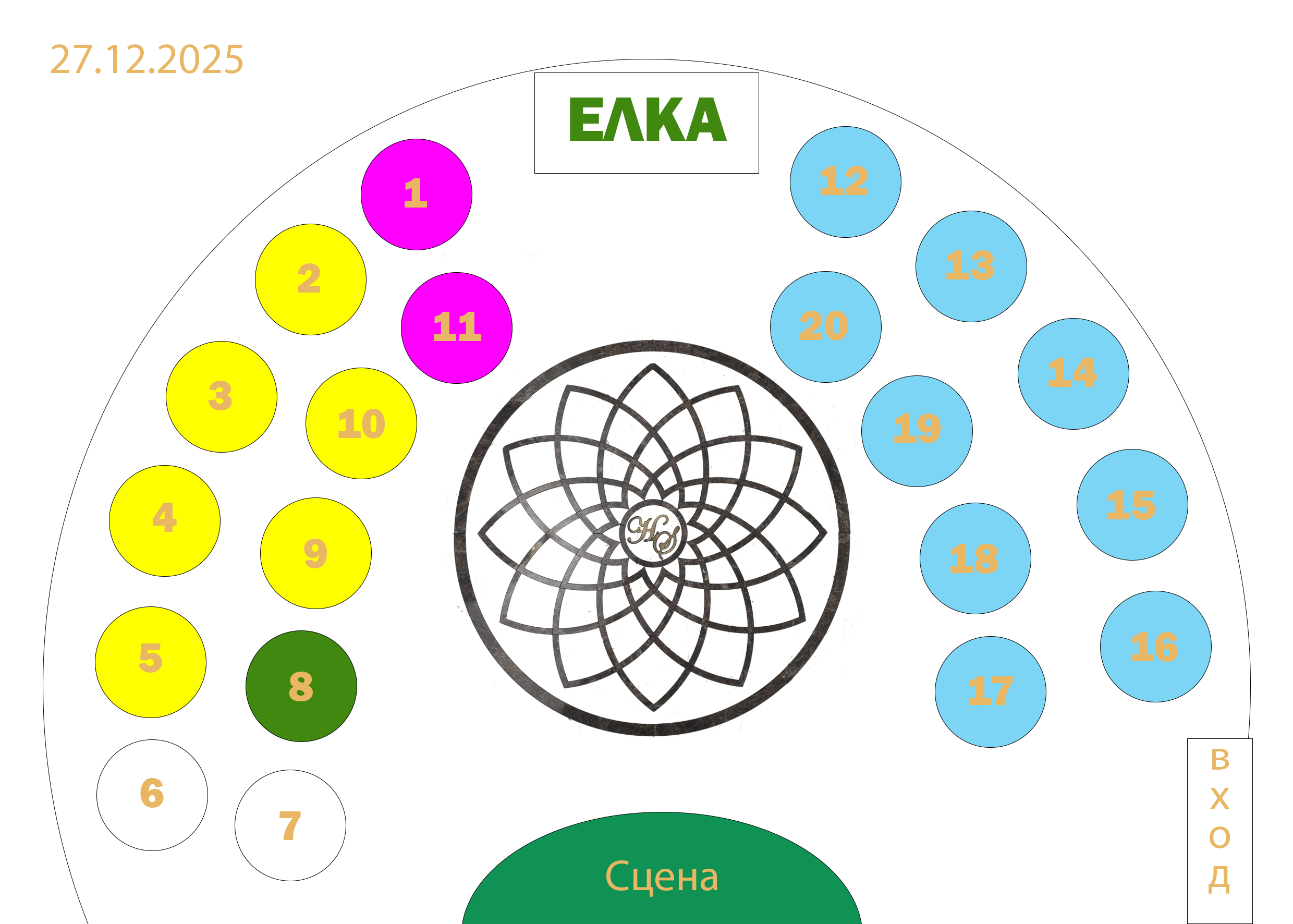 - Если несколько столиков окрашены в один цвет, значит, они заняты одной организацией.