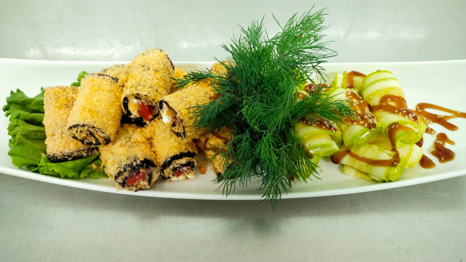 Овощные рулеты: кабачки с творожным сыром, рулетики из баклажанов, фаршированные шампиньоны